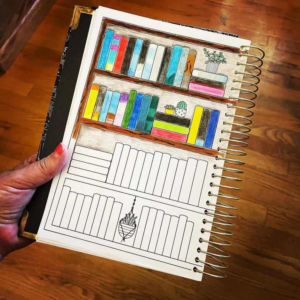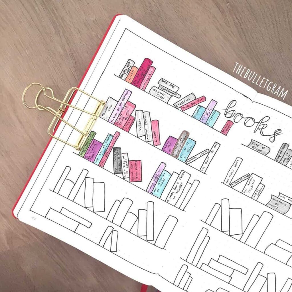 Shelf-style bullet journal reading tracker