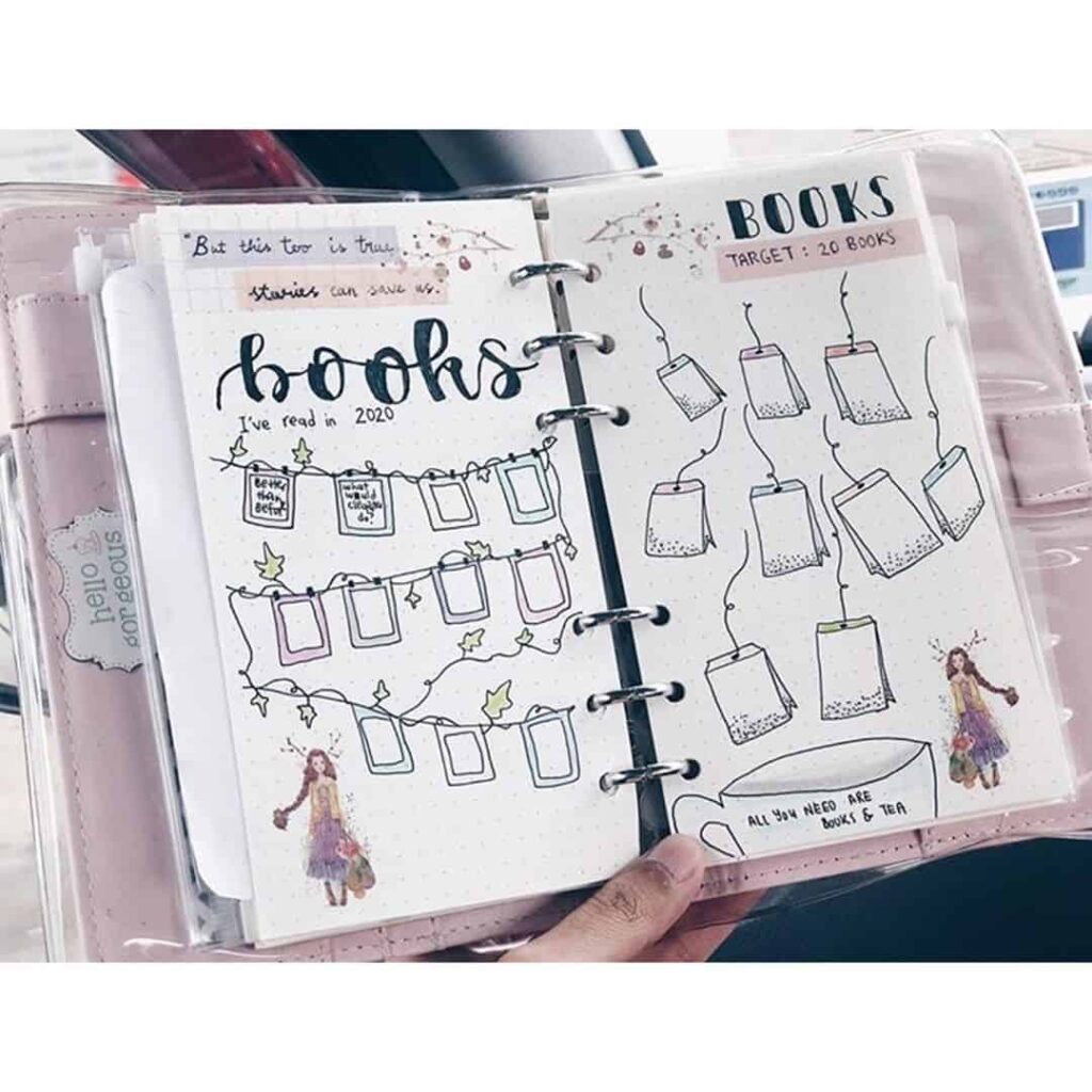 Venture beyond the realms of tracking and delve into the realm of reflection. Design an engaging book review spread that welcomes your thoughts and critiques. Pair your well-crafted prose with star ratings, artistic book covers, or thought-provoking quotes. This section transforms your journal into a treasure trove of literary analyses and personal insights.