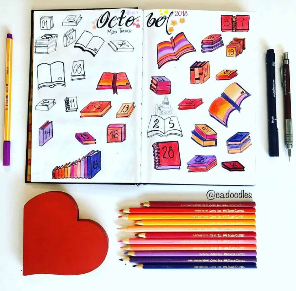 Examples of Book doodles in your bullet journal reading tracker