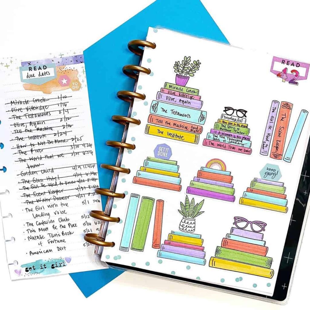 The Happy Planner has come out with a sticker collection that is ideal for people who enjoy reading in order to make your book doodles easier. It was given the name bookish, and it featured book trackers as well as books that were stacked and lined up! I adore this, and it is just too adorable for words!