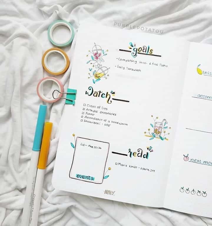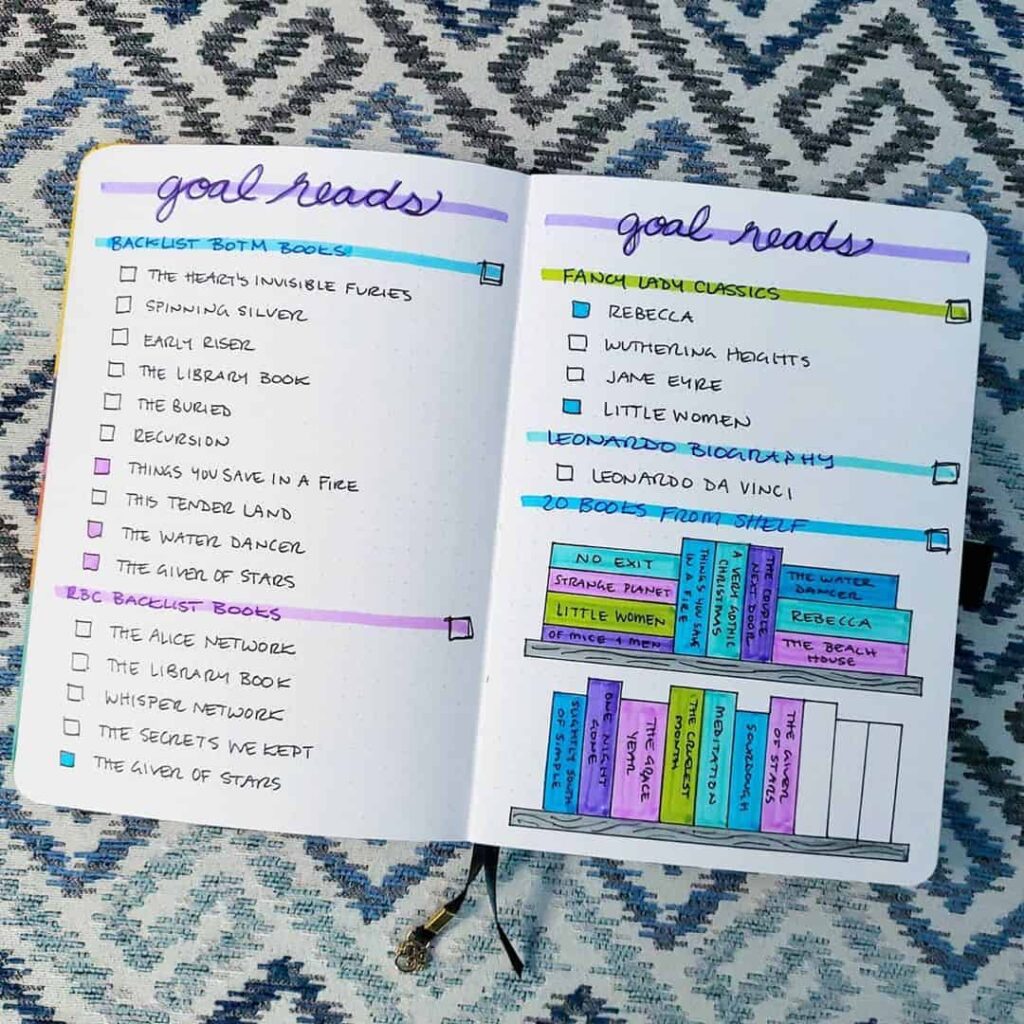 Every book lover knows the thrill of curating an enticing list of books to dive into. Your bullet journal can be your trusty repository for this purpose. Create an alluring “Books to Read” spread, adorned with bookshelf doodles or charming bookstack stickers. This section becomes a sanctuary for your literary aspirations, a place where you can list titles, authors, and even brief notes or ratings to guide your future selections.
